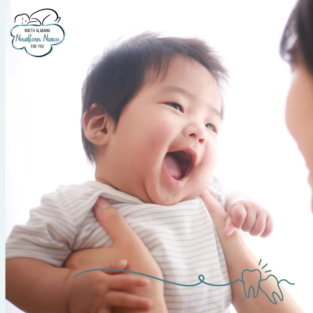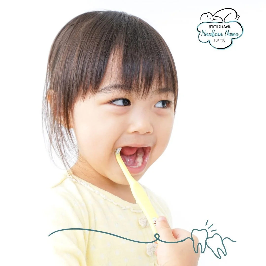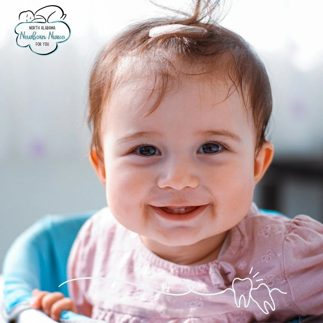 Even before the first tooth makes its appearance, you’ll want to start focusing on early dental hygiene habits! You can begin preparing baby for brushing later, by wiping their mouth with a clean, damp cloth or gauze. This is especially helpful after baby has a bottle or nurses, so the milk doesn’t pool in their mouth - this will be important for preventing decay and cavities when their first teeth make an appearance.